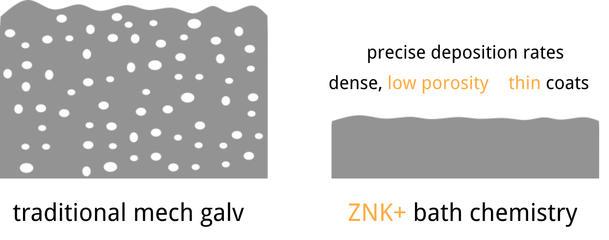 Our proprietary zinc tin multiple metal powder mix is a unique blend of zinc, tin, and other metal powders that are combined to create a durable coating over steel fasteners. This coating material provides a number of benefits over traditional galvanizing methods, including improved corrosion resistance, enhanced mechanical properties, and a longer service life.